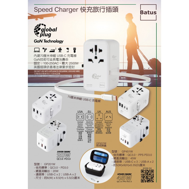 - 相容插座類型:美國/歐盟/英國/澳大利亞