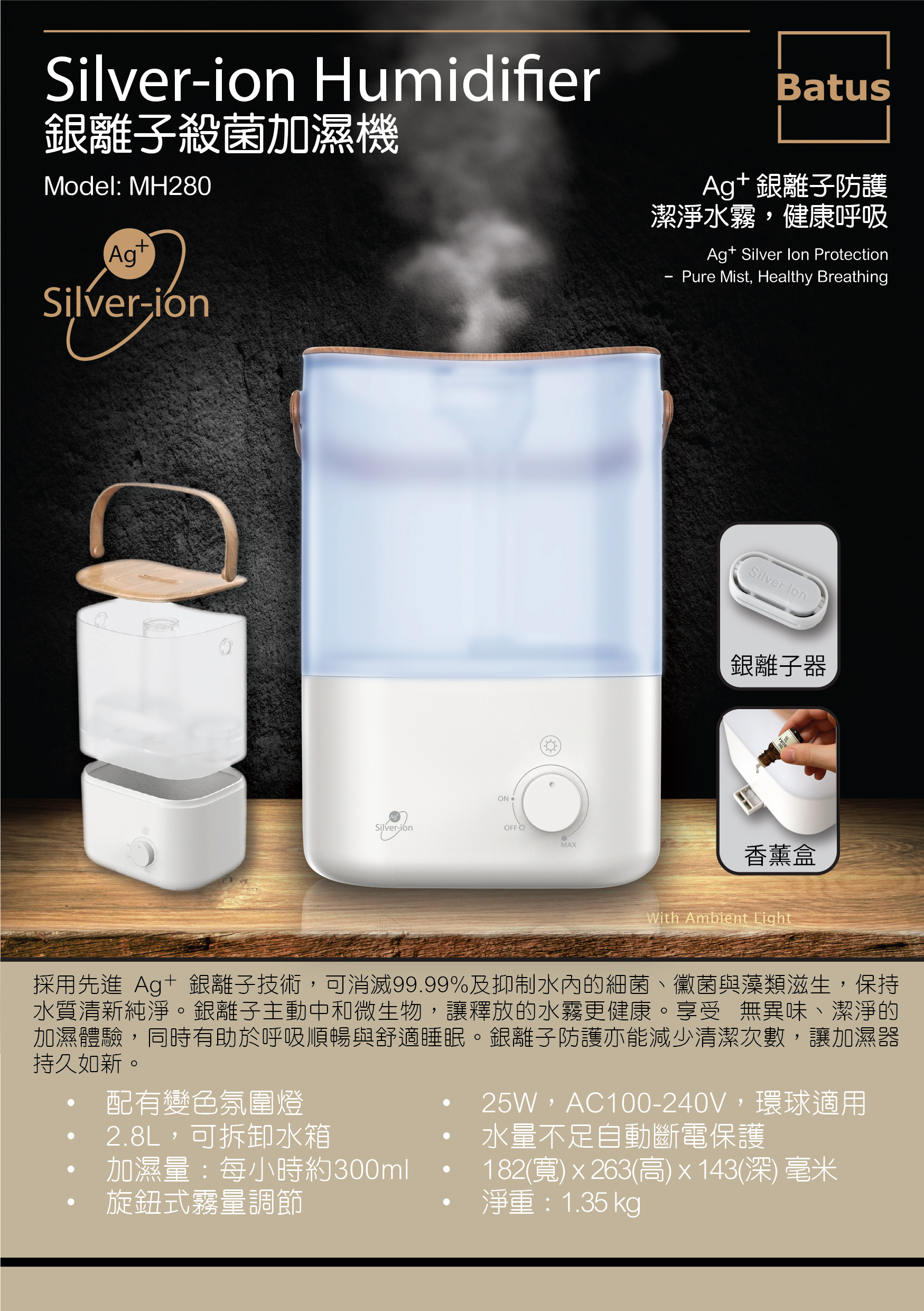 - Ag+ 銀離子防護潔淨水霧,健康呼吸