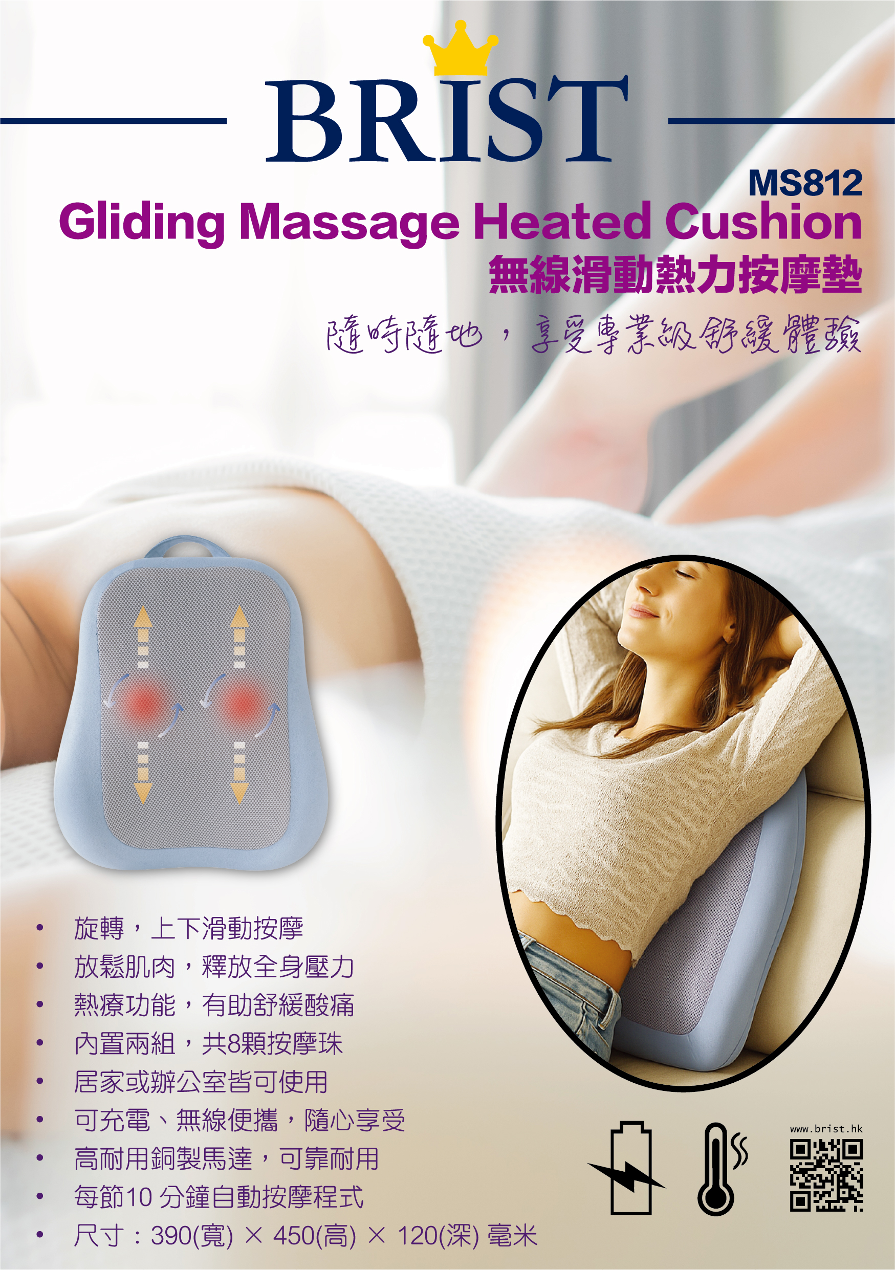 - 旋轉,上下滑動按摩- 放鬆肌肉,釋放全身壓力- 熱療功能,有助舒緩酸痛- 內置兩組,共8顆按摩珠- 居家或辦公室皆可使用- 可充電、無線便攜,隨心享受- 高耐用銅製馬達,可靠耐用- 每節10 分鐘自動按摩程式- 尺寸:390(寬) × 450(高) × 120(深) 毫米