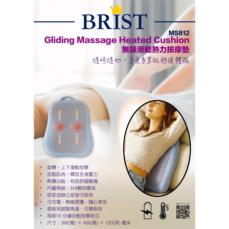 - 旋轉,上下滑動按摩- 放鬆肌肉,釋放全身壓力- 熱療功能,有助舒緩酸痛- 內置兩組,共8顆按摩珠- 居家或辦公室皆可使用- 可充電、無線便攜,隨心享受- 高耐用銅製馬達,可靠耐用- 每節10 分鐘自動按摩程式- 尺寸:390(寬) × 450(高) × 120(深) 毫米