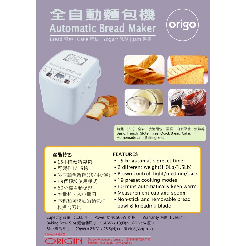 - 麵包桶容量: 1.6升, 可製作1/1.5磅