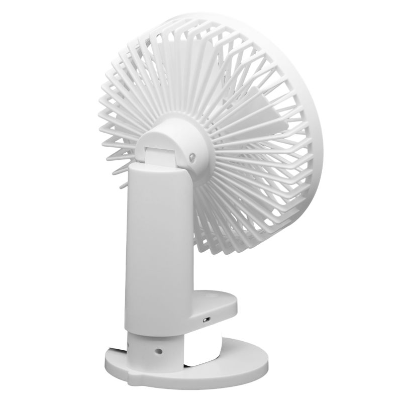 - 夾扇/檯扇/掛牆,一機三用- 3段風速(低/中/高)- USB線操作/充電- 2000mAh Li-ion 電池- 90度手動上下角度調校- DC5.0V- 小巧機身: 約15.7(W) x 19(H) x 11.2(D)厘米