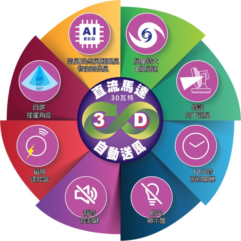 - 30/60/90度自選左右搖擺