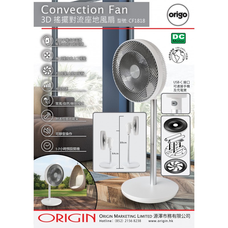 origo CF1818 3D 搖擺對流座地扇: