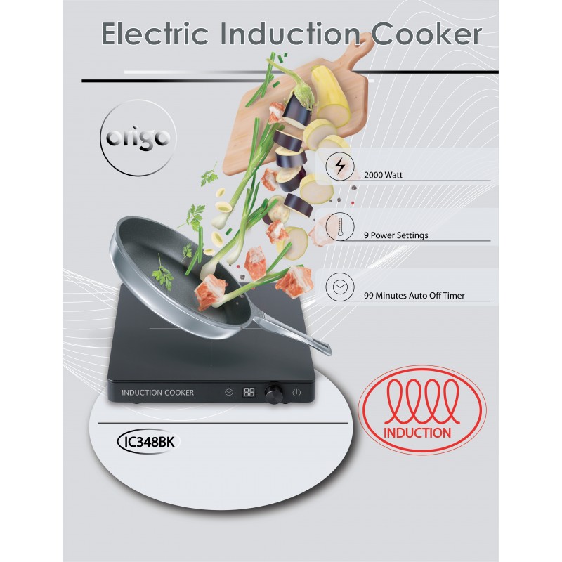 - 2000瓦特- 黑晶玻璃面板- 觸摸式及旋鈕控制- 9段火力調控(200-2000W)- LED顯示屏- 99分鐘自動關機功能- 3級能源標籤- 機身尺寸: 約27(W) x 6.5(H) x 28.2(D) 厘米