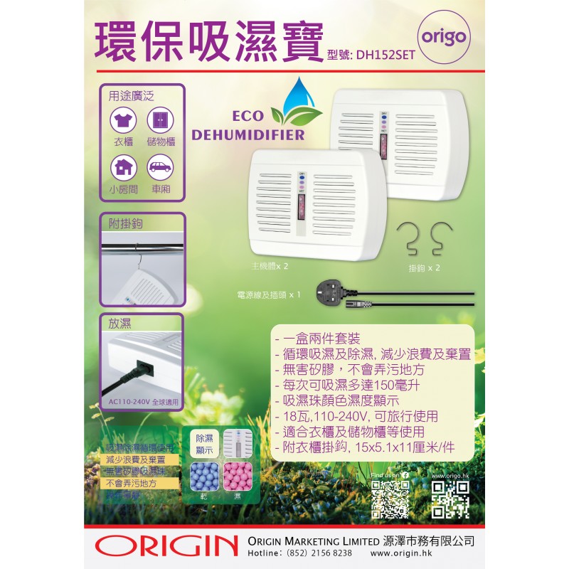 - 一盒兩件套裝- 循環吸濕及除濕, 減少浪費及棄置- 無害矽膠,不會弄污地方- 每次可吸濕多達150毫升- 吸濕珠顏色濕度顯示- 18瓦,110-240V, 可旅行使用- 適合衣櫃及儲物櫃等使用- 附衣櫃掛鈎, 尺寸: 約15(W)x11(H)x5.1(D)厘米/件