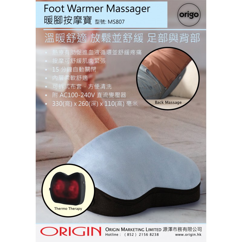 - 熱療有助促進血液循環並舒緩疼痛- 按摩可舒緩肌肉緊張- 15 分鐘自動關閉- 內層柔軟舒適- 可拆式布套,方便清洗- 附 AC100-240V 直流變壓器- 尺寸: 約330(寬) x 260(深) x 110(高) 毫米
